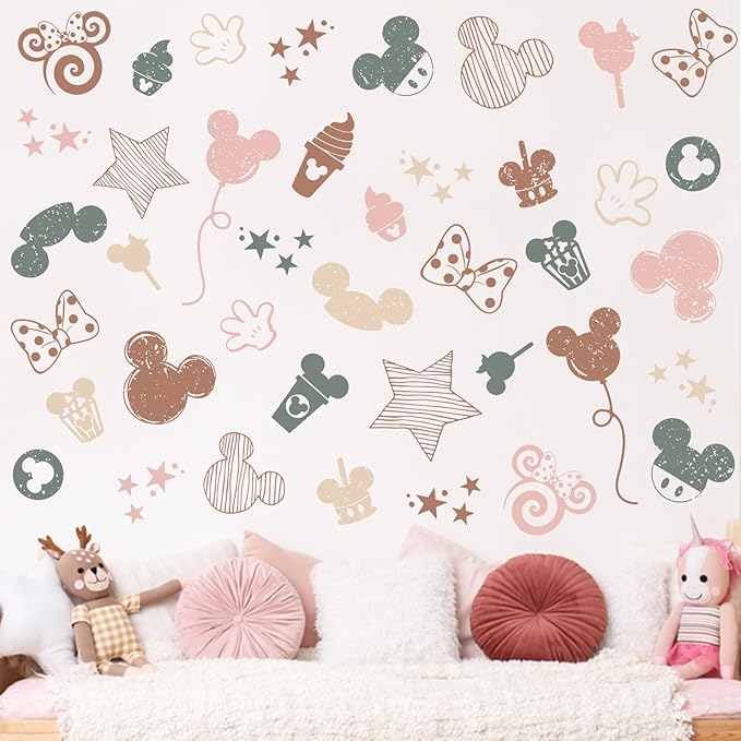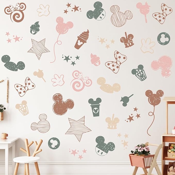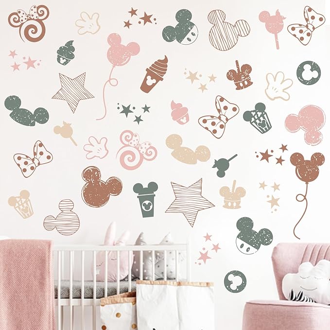 - Nursery Decorations: Our neutral wall decals are designed with various vivid patterns like cartoon mouse, red and pink polka dots bow, stars, ice cream, coffee drinks, candy, lollipop, balloon and gloves. These lovely mouse wall decals and stickers are suitable for kids bedroom, nursery, preschool, daycare, playroom, classroom, living room, kindergarten and school. Perfectly DIY a magic space for baby, infant, toddlers, kids, children, teens, teenagers, girls and boys