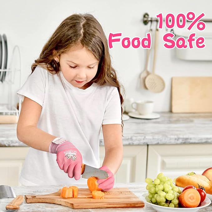 - 【Perfect Choice】We offer two pairs of high-quality kids' gloves, which can be reused and cost-effective. Kids cooking gloves are suitable for kitchen cooking,mandolin, peeling, crafting, wood carving, yarn cutting and more. Kids gloves are very easy to clean by hand or machine.