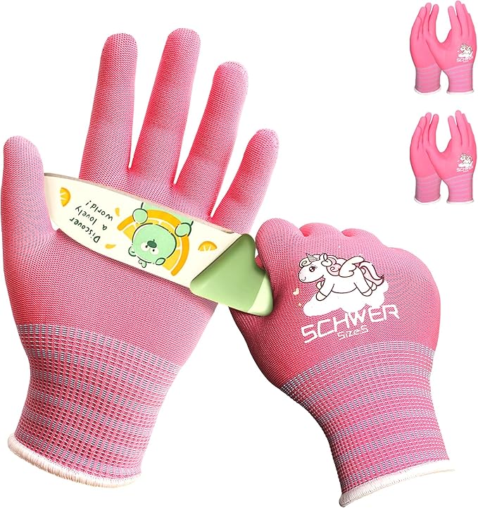 Schwer 2 Pairs MINI-KIDDO Kids Garden Gloves MN1917, ANSI A6 Kids Cutting Gloves, Food Grade Kids Cooking Gloves Cut Resistant for Gardening, Wood Carving, Whittling, Kitchen and DIY (S, 9–14 Years)