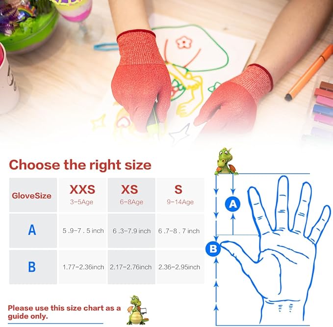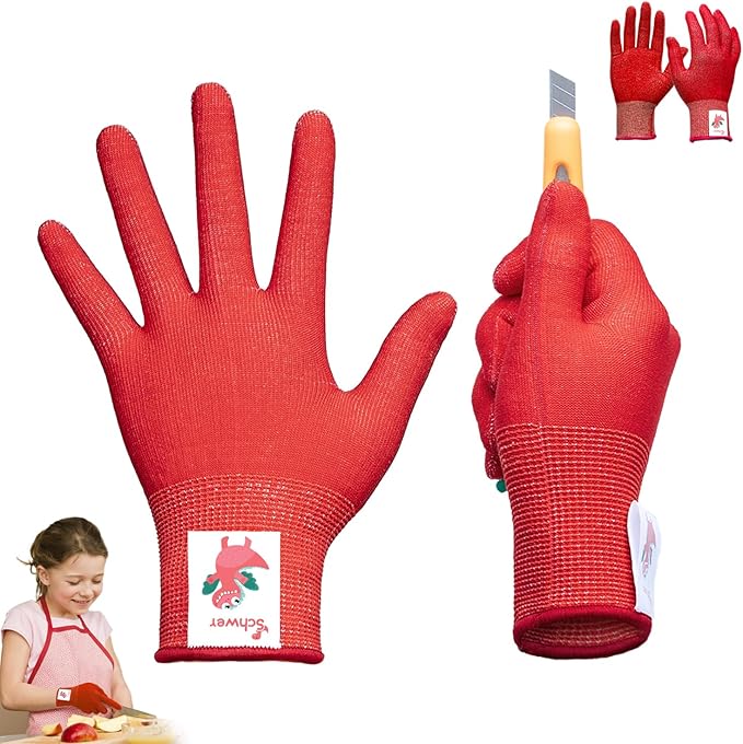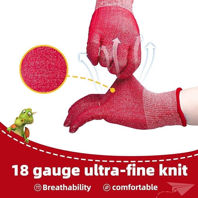 - 【ANSI A6 Cut Level】Kids' cut resistant gloves provide ANSI A6 cut resistance, maintaining the higher level of protection in its class. For kids, the cut resistance of kids cutting gloves can fully meet the hand protection they need in all work.