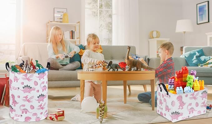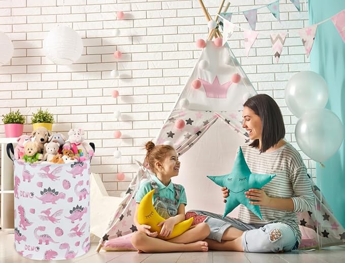 Pink Dinosaur Hamper,Kids Laundry Basket,Pink Storage Baskets for Boys and Girls Room Decor,Dinosaur Basket,Toy Organizer,Gift Hamper(Pink Dinosaur)