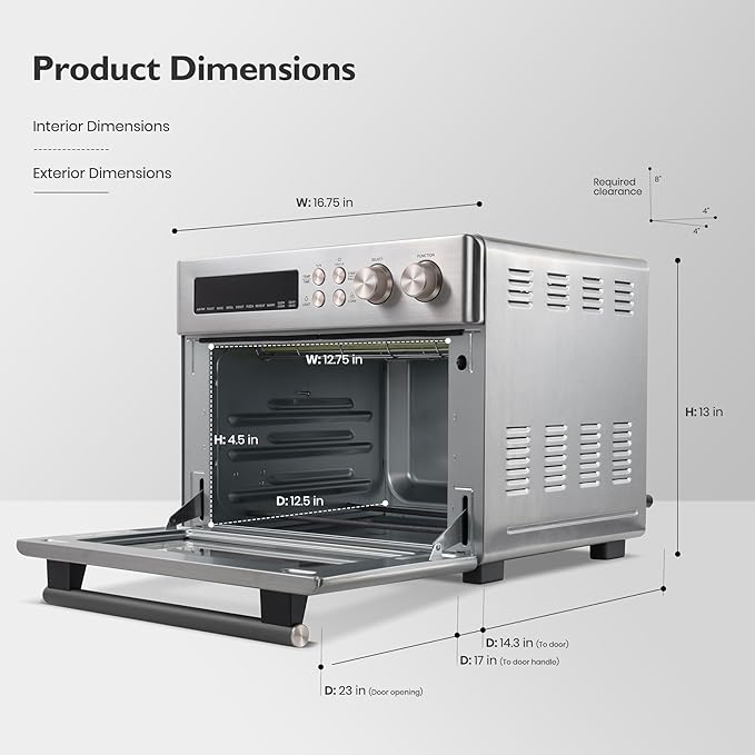 - [INFRARED HEATING + TRUE CONVECTION AIR FRY] Our cutting-edge technology features a powerful and effective heat radiation system, coupled with a high-velocity heated-air circulation, which results in a quick and deliciously flavorful brown crust while preventing food from becoming overcooked or dried out. It ensures that the interior of food remains tender and juicy, stays succulent and moist up to 35%, providing a perfect balance of texture and taste.