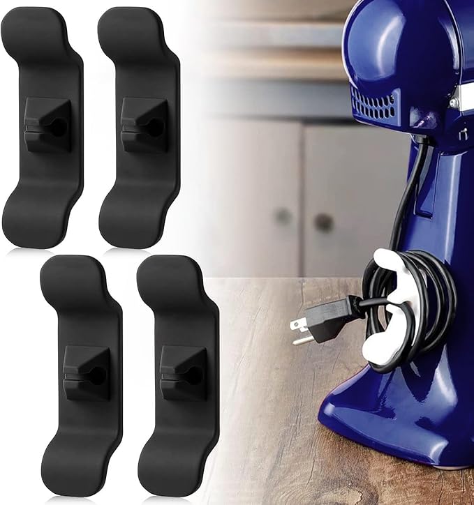 • PREMIUM MATERIAL: Each appliance cord organizer stick on is made of high quality rubber, durable and deformation resistant. The sticky adhesive pad is non-toxic, odorless, and will not leave marks on kitchen appliance surface