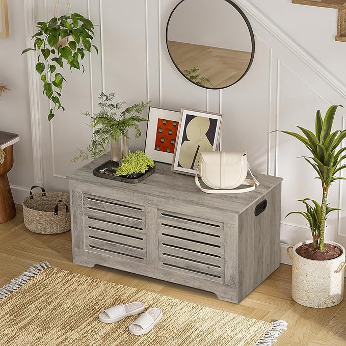 - 【Ideal Home Decor】Modern color and exquisite shutter doors of the blanket chest bring a perfect encounter of retro and elegance to your home. Vintage design fits with any home décor and brightens your room. It is well-suited for playroom, living room, bedroom, entryway, etc