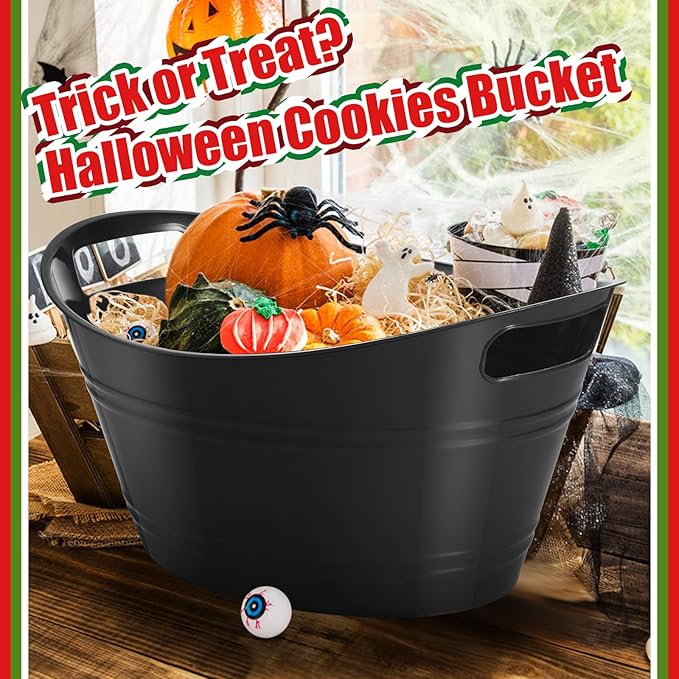 Norme 24 Pcs Oval Storage Tub with Handles, 4.5L Plastic Ice Bucket Wine Beer Champagne Bottle Drink Cooler Tub for Parties Beverage, Storage Basket (Black)