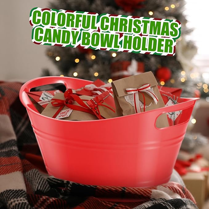 Norme 24 Pcs Oval Storage Tub with Handles, 4.5L Plastic Ice Bucket Wine Beer Champagne Bottle Drink Cooler Tub for Parties Beverage, Storage Basket (Colorful)