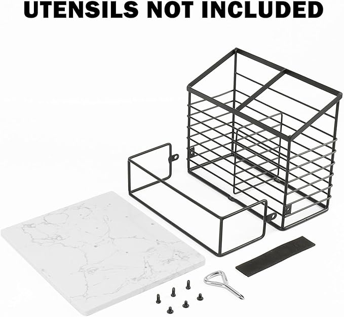 - Large Utensil Organizer, Metal Utensil Holder Rack with Salt and Pepper Shakers, Breathable and Easy to Dry, and Drainage Hole