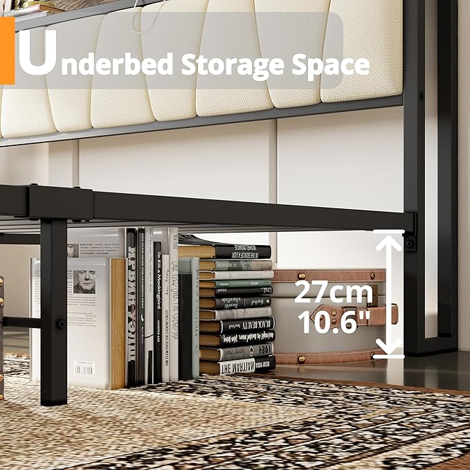 - 【Space-Saving and Easy Assembly】With a 10.4" under-bed clearance, this platform bed provides extra storage space. Each part of the king bed is clearly labeled and numbered, making the assembly process quick and hassle-free