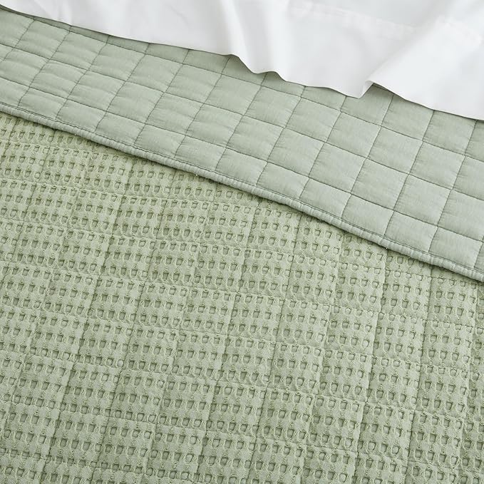 Levtex Home Mills Waffle Queen Bedspread Set (104x106in) with 2 Pillow Shams (26x20in) - Desert Sage - 100% Cotton Queen Size Bedspread Set - Lightweight, Soft, Pre-Washed
