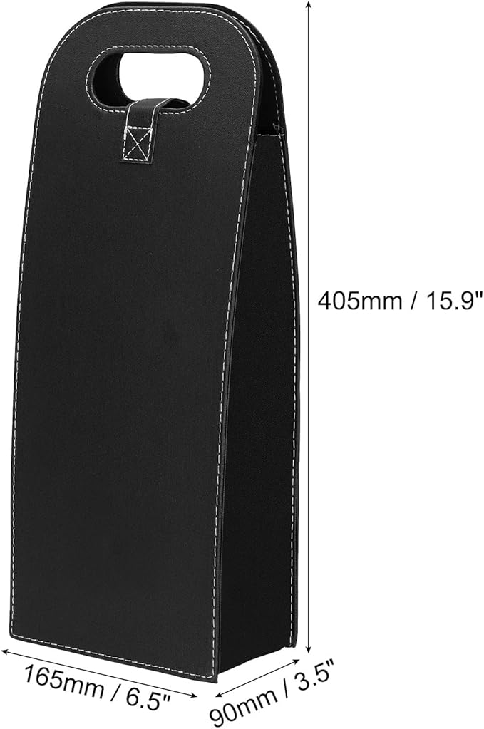 - Color: Black; Material: Leather; Thickness: 3.5mm / 0.1 inch; Size: 165 x 90 x 405mm / 6.5 x 3.5 x 15.9 inch(L*W*H); Packing List: 1 x Wine Carrier Tote