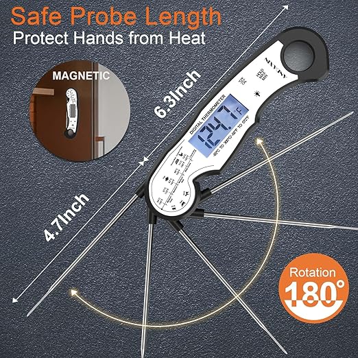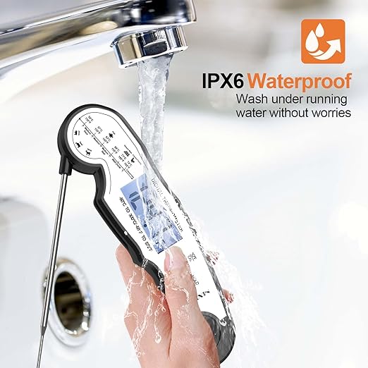 - [IP65 Waterproof & Convenient Storage] - Quickly clean the digital meat thermometer under running water; features a magnetic back to allow for placement on any metal surface.