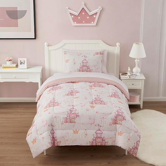 Kids Bedding Set Bed in a Bag for Boys and Girls Toddlers Printed Sheet Set and Comforter, Twin, Fairytale Princess