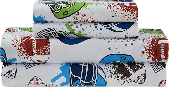 Kids Bedding Set Bed in a Bag for Boys and Girls Toddlers Printed Sheet Set and Comforter, Twin, Football