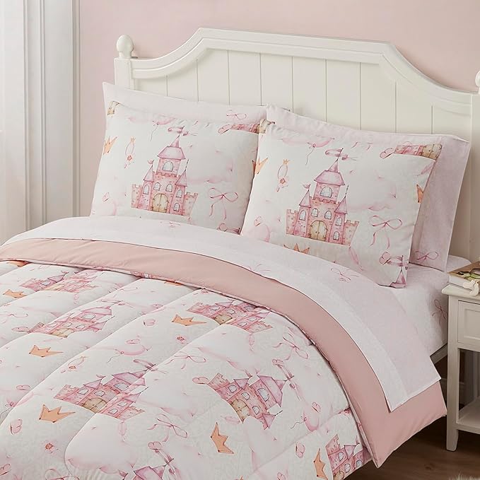 Kids Bedding Set Bed in a Bag for Boys and Girls Toddlers Printed Sheet Set and Comforter, Full, Fairytale Princess