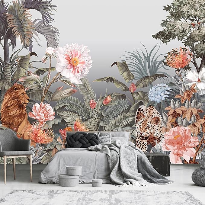 Gray Tropical Jungle Animals Kids Room Wallpaper (Not Peel and Stick)