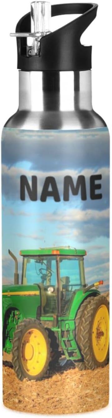 Tractor Stainless Steel Water Bottle with Straw Lid - 20 Oz Sports Insulated Water Bottle Thermos for Sport Gym Outdoor Travel School