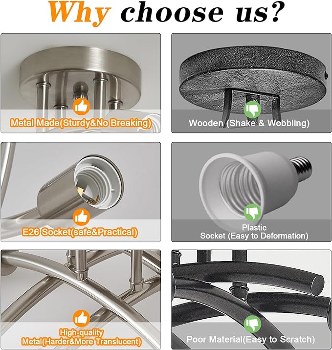- 【Modern Sputnik Chandelier Design】This modern ceiling light fixture comes with sputnik style and modern geometric shape, combining the style of modern and retro. And this rustic ceiling lighting is suitable for any home decor style, creating a comfortable and elegant atmosphere in your house. The flush chandelier ceiling light is ideal for decorating your home or as a gift for friends and family!