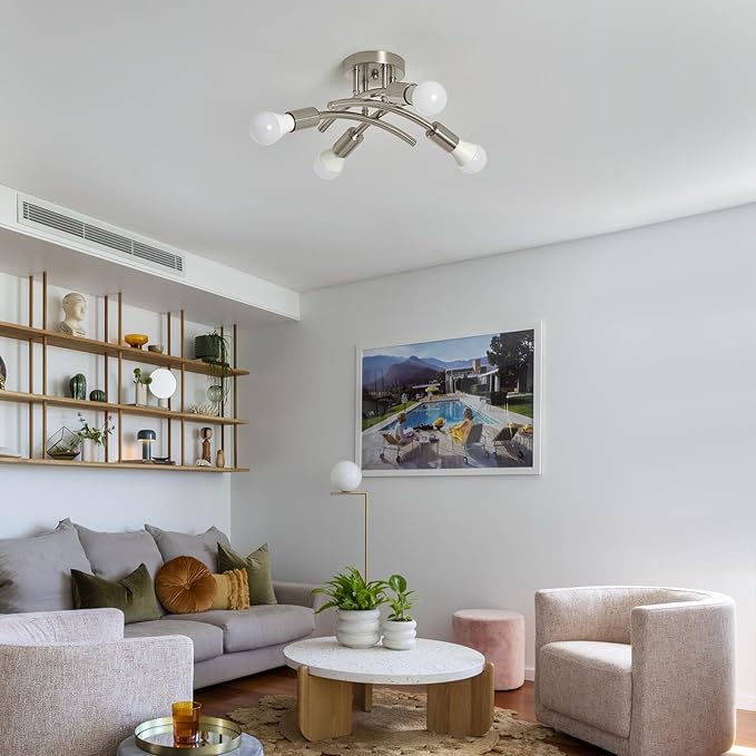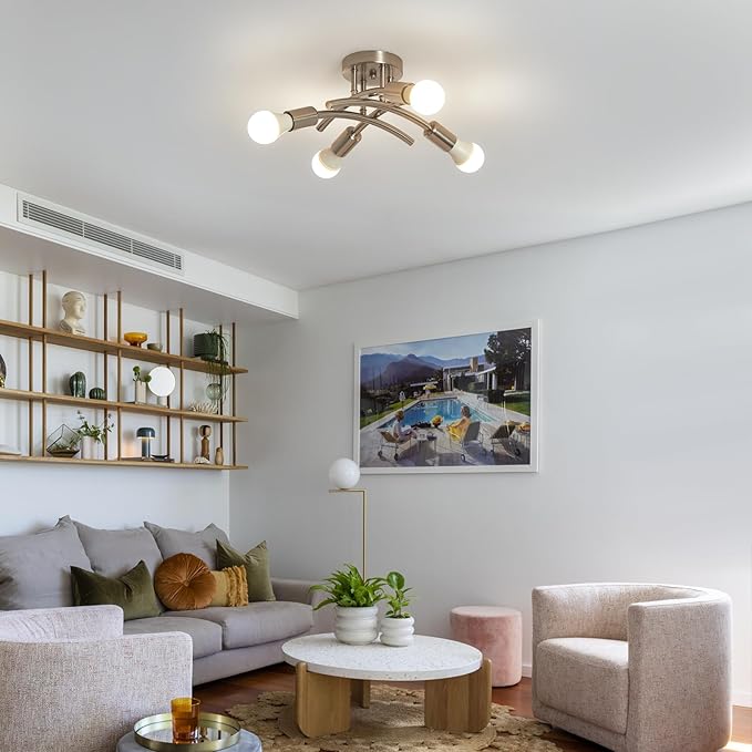 BUXVRCS Semi Flush Mount Ceiling Light Fixture, Modern Sputnik Chandelier Light Fixtures, Industrial Kitchen Light Fixtures Ceiling Mount, 4-Light Dining Room Light Fixture Bedroom (Brushed Nickel)