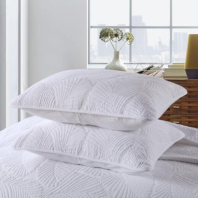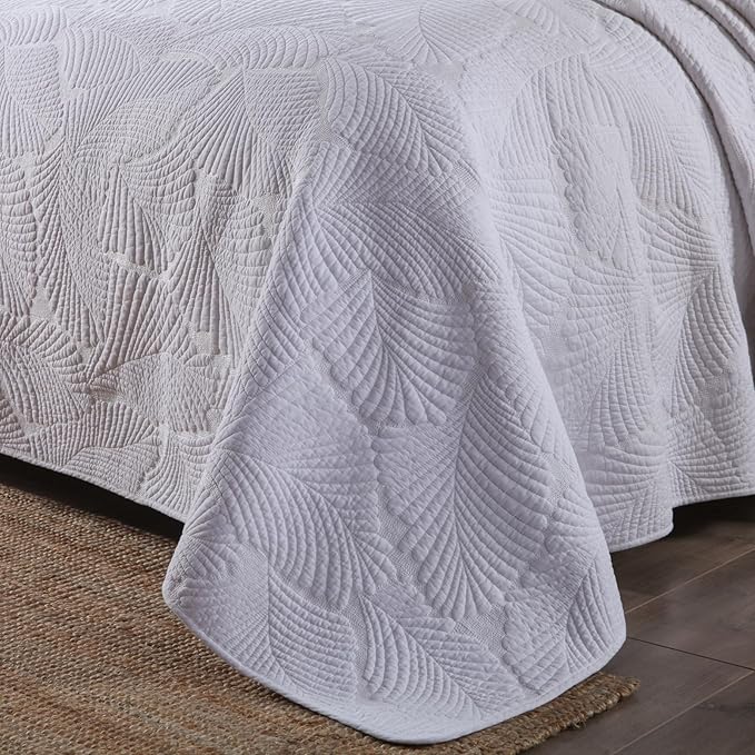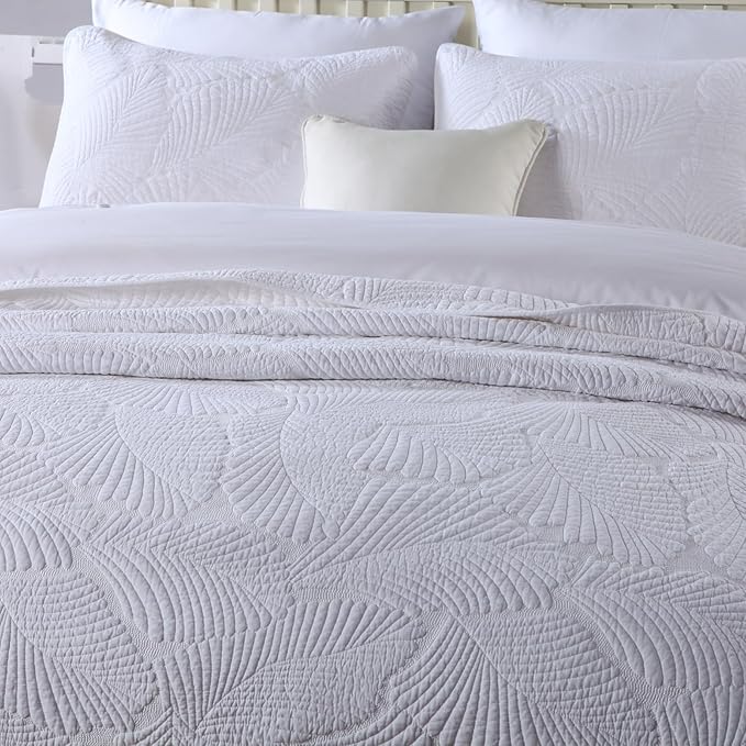 mixinni White Palm Leaf Quilt Set Cotton Quilt Sets King Size Bed