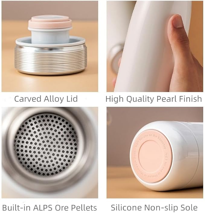 15 oz Alkaline Water Bottle | Pearl white|Creates High ph Premium Water | Keeps Drink Cold up to 24 Hours | Vacuum Insulated 316 Stainless Stee, ALPS Mineral Bottle