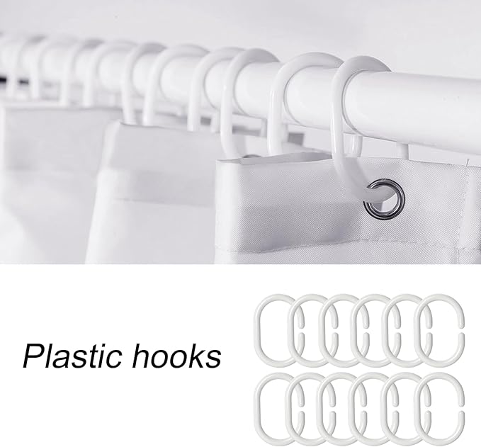 - WHAT’S INCLUDE: 1 shower curtain and 12 plastic hooks.
