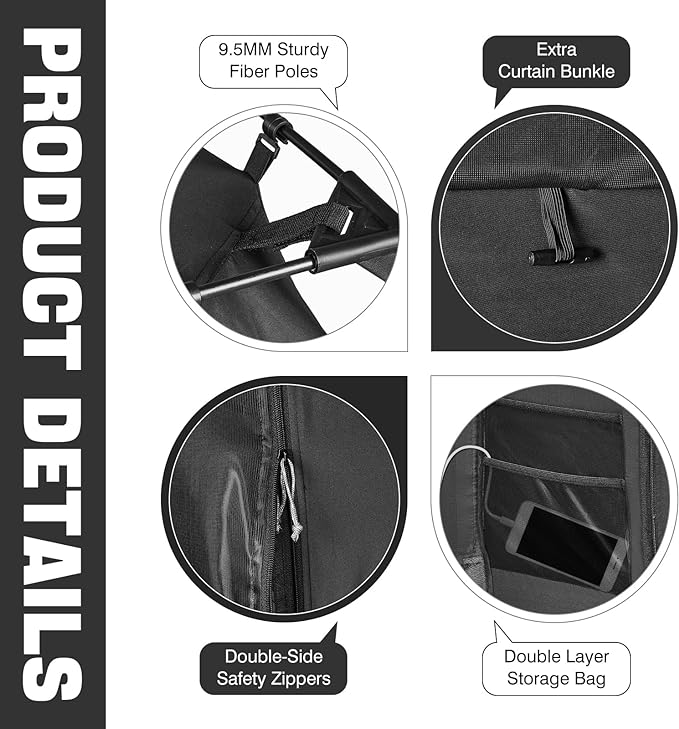 - RECTANGULAR PATENTED DESIGN: BORNA bed tent is designed with unique inserted poles, compared to pop-up tents on the market, we use 8mm fiber poles to create this through pole blackout tent, which won't collapse or bend, making it more stable and durable. The rectangular frame structure is also very spacious, making it an ideal choice for you.
