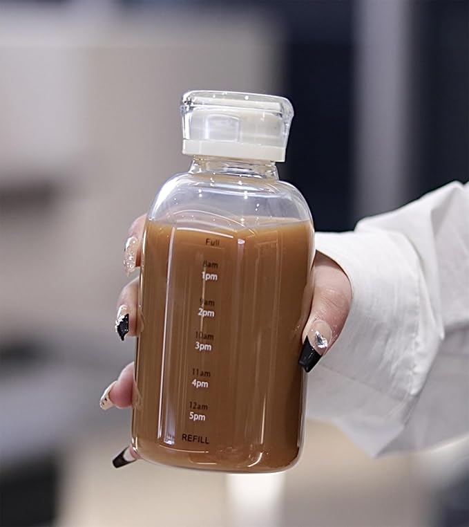 - Versatile and Adorable Glass Bottle for All Beverages: This Glass Water Bottle isn't just limited to water,glass bottle for juicing. it's a versatile companion for any drink of your choice!! Like coffee, milk, juice, tea, lemonade.The borosilicate glass is refrigerator safe!, which mean you can brew an bottle of icy refreshed beverage.