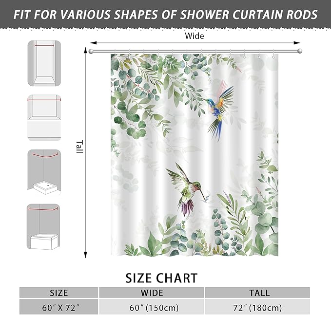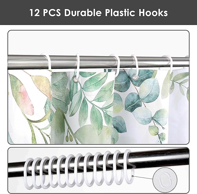 - Suitable Size: 60"W x 72"L. Contains 12 plastic hooks easy to install. can be used for bathtubs, shower stall, or any bath.