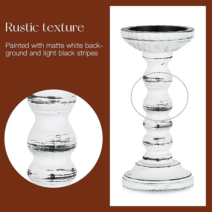 - 【UNIQUE COLOR】Candeldo wooden candle holders pillar is painted with matte white background and light black stripes of paint, rustic candle holder is a true white wash look with more white than grey, which gives you a sedate looking.