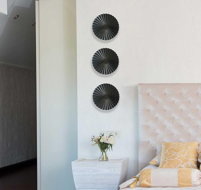 - The pleated design of these black metal wall art discs resemble the very rays of the sun, radiating out from the center circle with timeless beauty. If you are searching for a modern home decor piece for a blank wall. These were perfect!