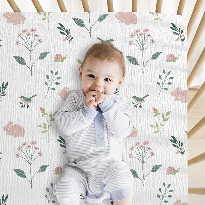 Muslin Crib Sheets, 2pk Neutral Fitted Baby Toddler Bed Sheets for Standard Crib Mattress & Toddler Bed Mattress, 28 x 52 inches, Pink Bunny
