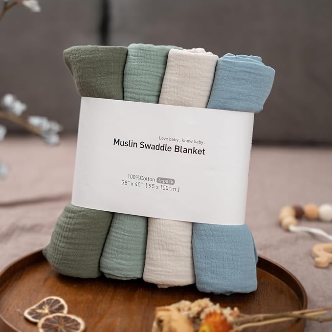 GLLQUEN BABY Muslin Swaddle Blankets for Boys and Girls, 4-Pack Baby Blankets for Girl Boy, Newborn Receiving Blanket, Baby Swaddle Blanket Unisex, Baby Essentials, Registry & Gift
