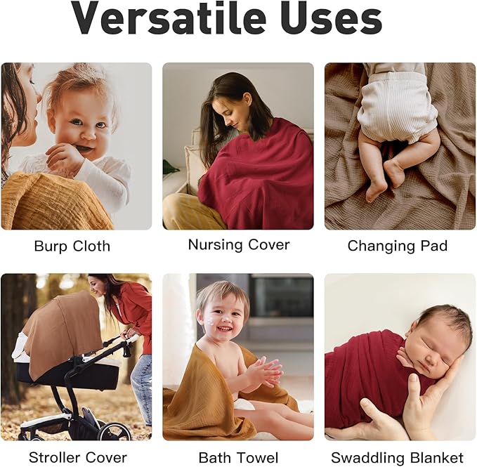 - MULTIPURPOSE USAGE: Our baby blanket can also be used as receiving blanket, cuddle blanket, mini crib sheet, nursing cover, sunscreen for strollers, burp cloth, car seat cover, play mat, changing pad and so on. Comes in a convenient 4 pack with neutral colors. Gllquen baby muslin swaddle wraps is suitable for baby boys and girls, easily meet all your daily needs