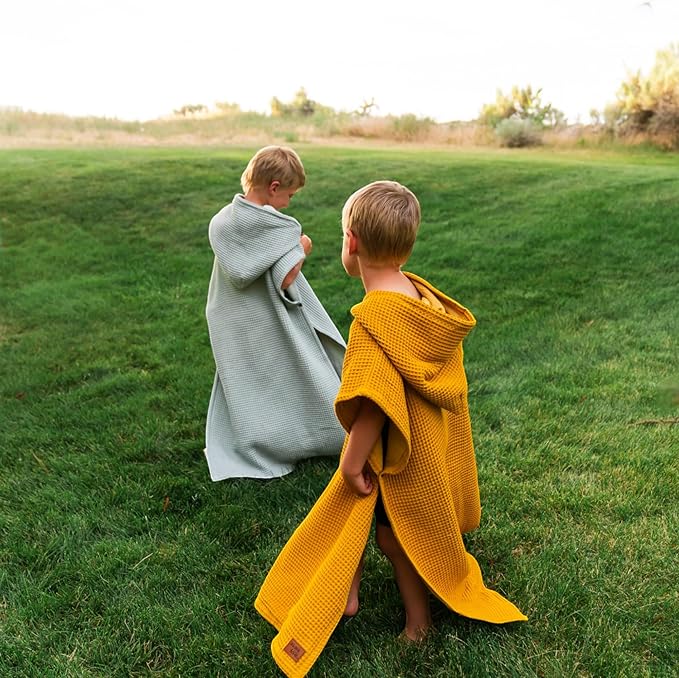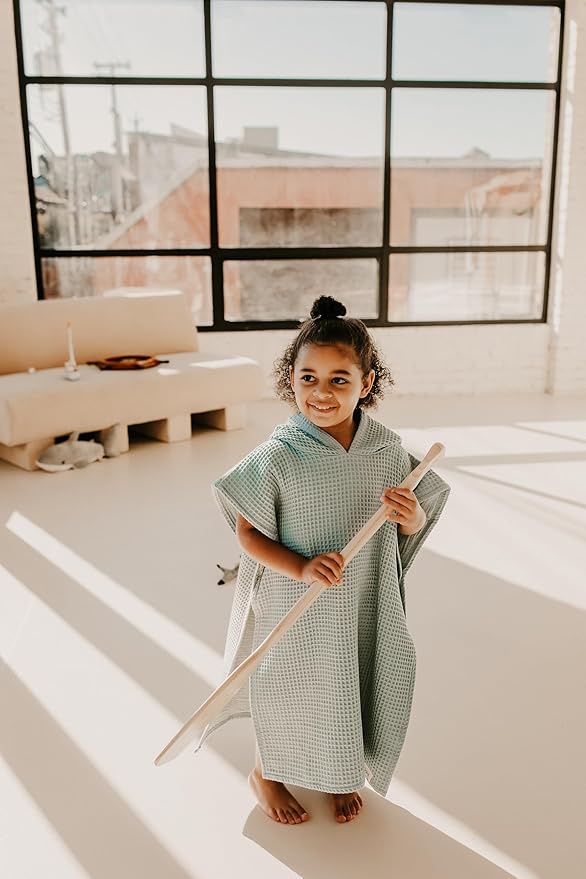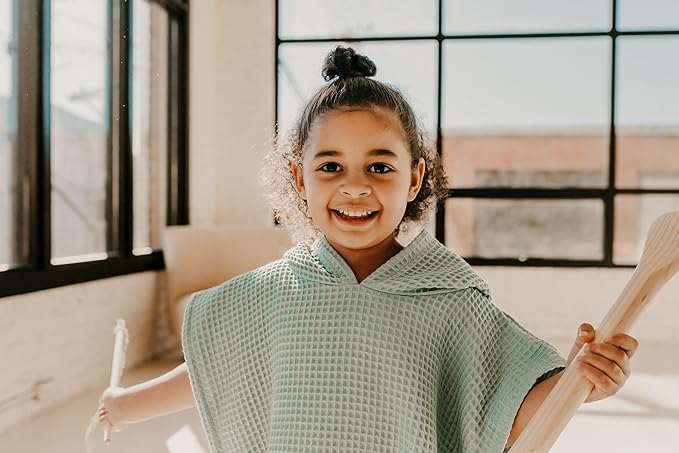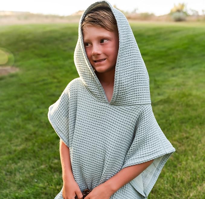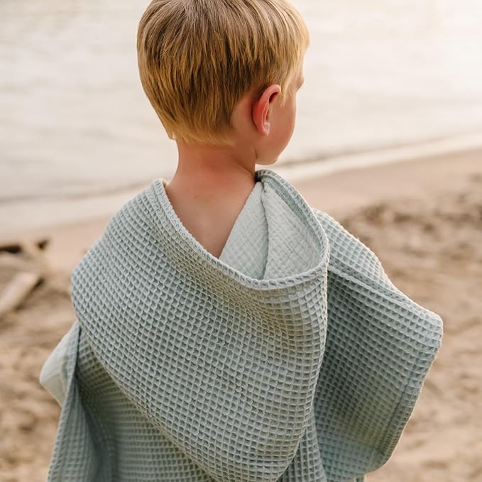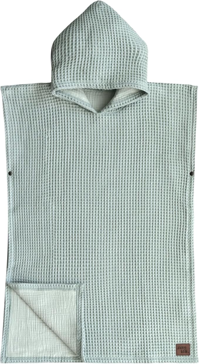 Hooded Towel for Babies + Toddlers | Snaps into a Poncho | Organic Cotton Waffle | Lighweight and Absorbent | Bath, Beach, and Pool | Multiple Colors (Small (0-3 Yrs), June Breeze)