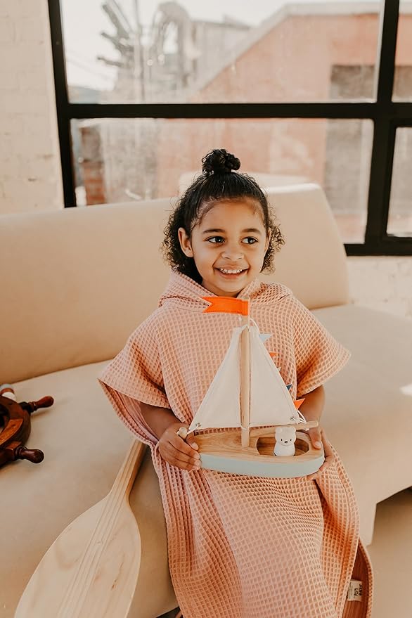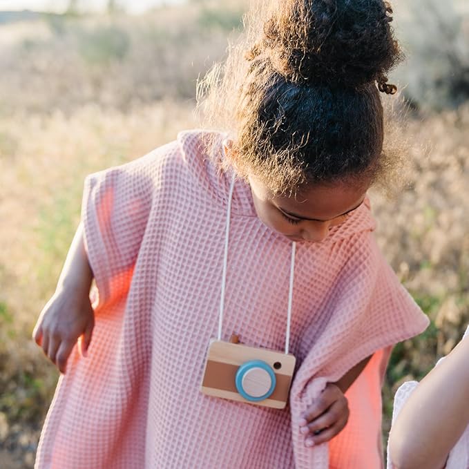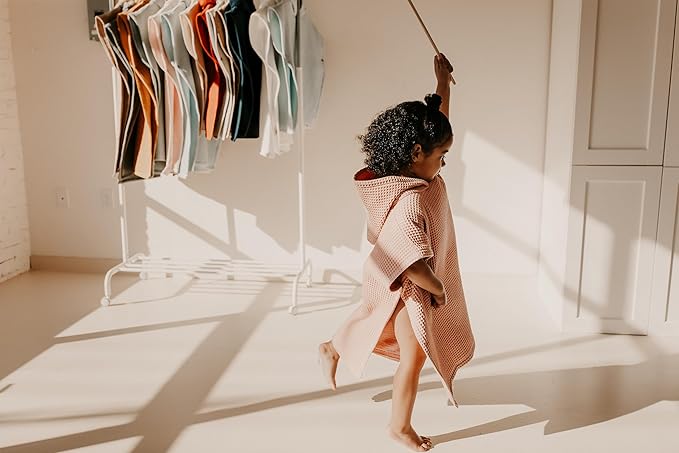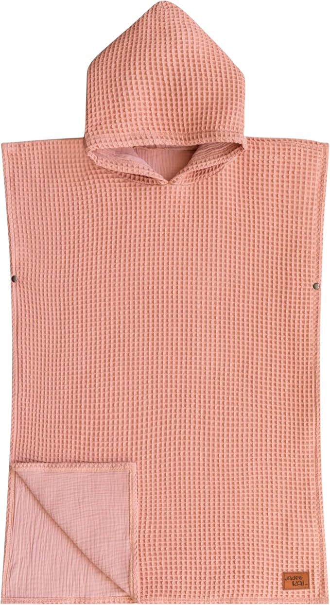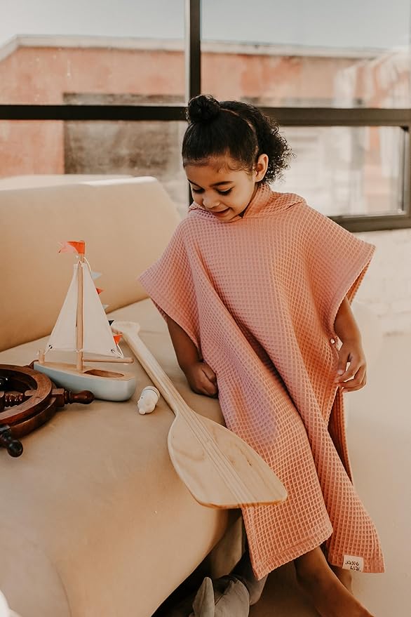 Hooded Towel for Kids | Snaps into a Poncho | Organic Cotton Waffle | Lightweight and Absorbent | Bath, Beach, and Pool | Multiple Colors | (Medium (3-6 Yrs), August Rose)