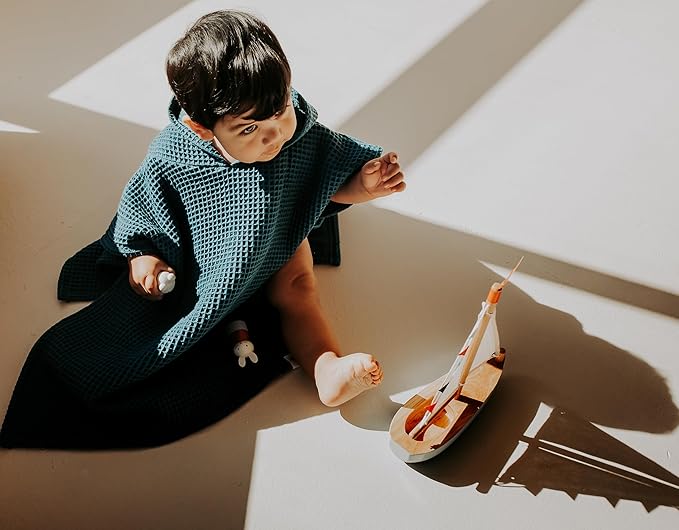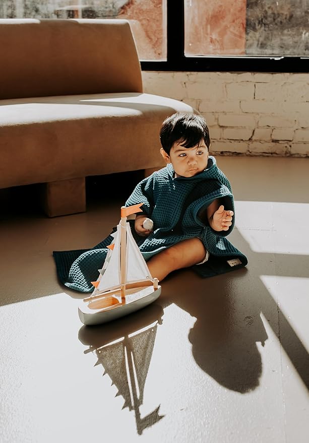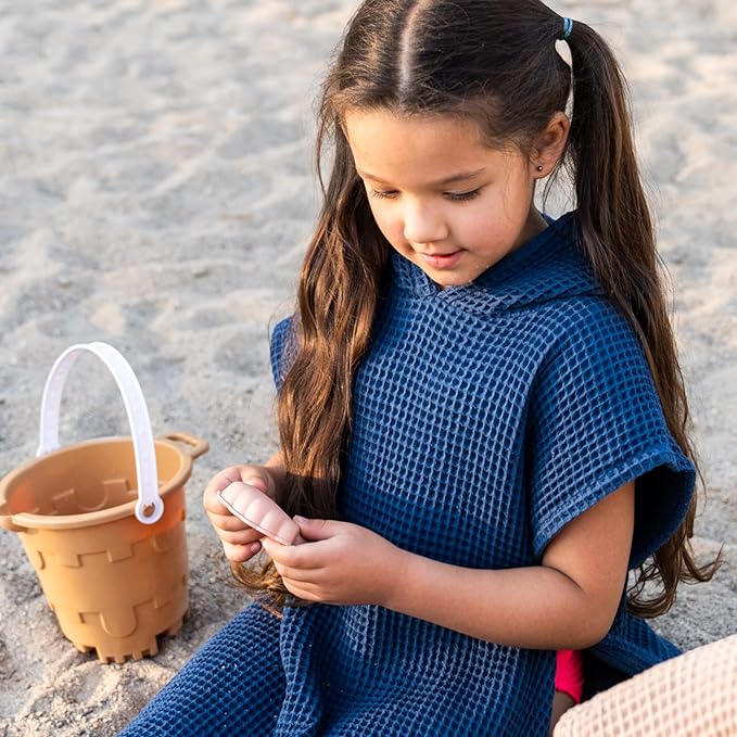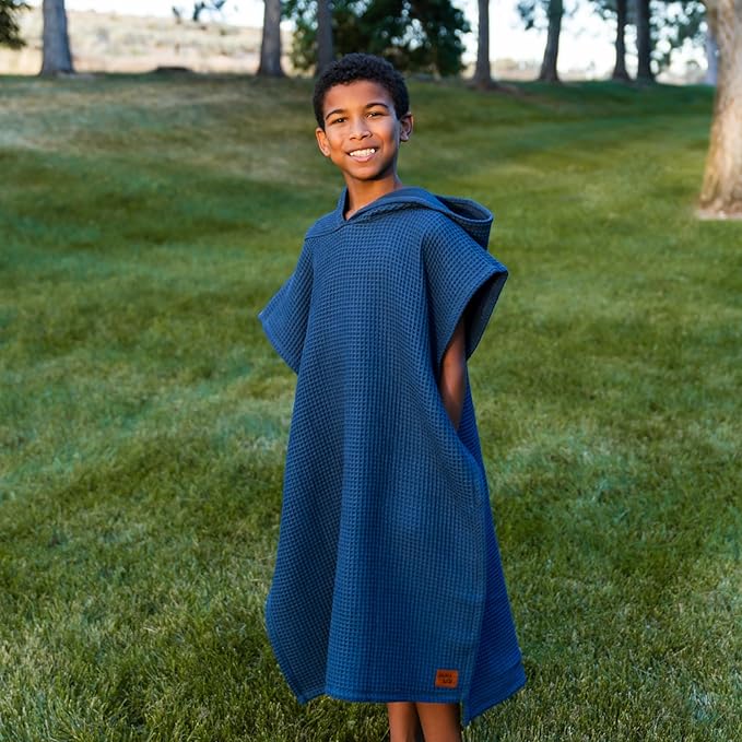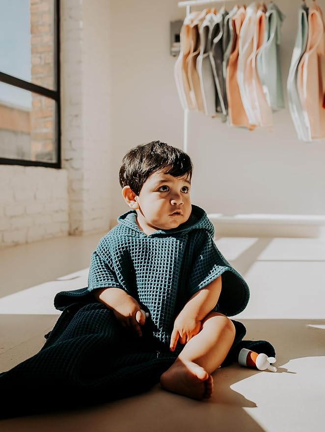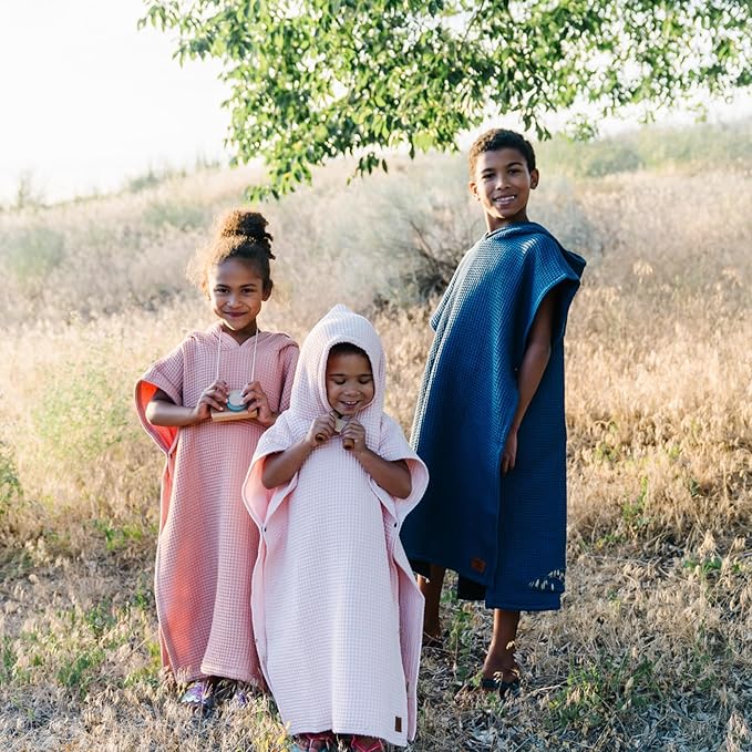 Hooded Towel for Kids | Snaps into a Poncho | Organic Cotton Waffle | Lightweight and Absorbent | Bath, Beach, and Pool | Multiple Colors | (Medium (3-6 Yrs), January Aqua)