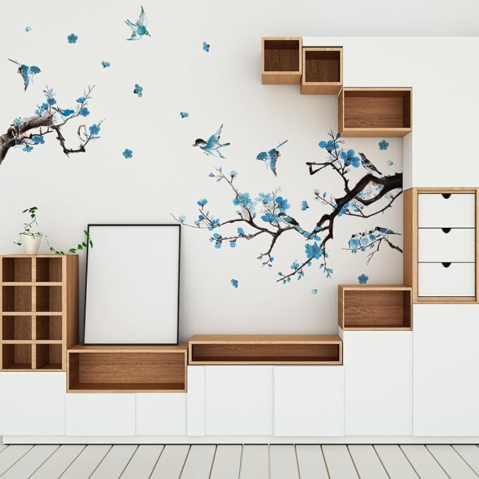 - Experience the fun of DIY: the vinyl flowers wall decals are cut into separate pieces and can DIY the wall decorations with your unlimited creativity and imagination to rearrange and assemble the blue flowers and birds decors, showing your distinctive and elegant taste
