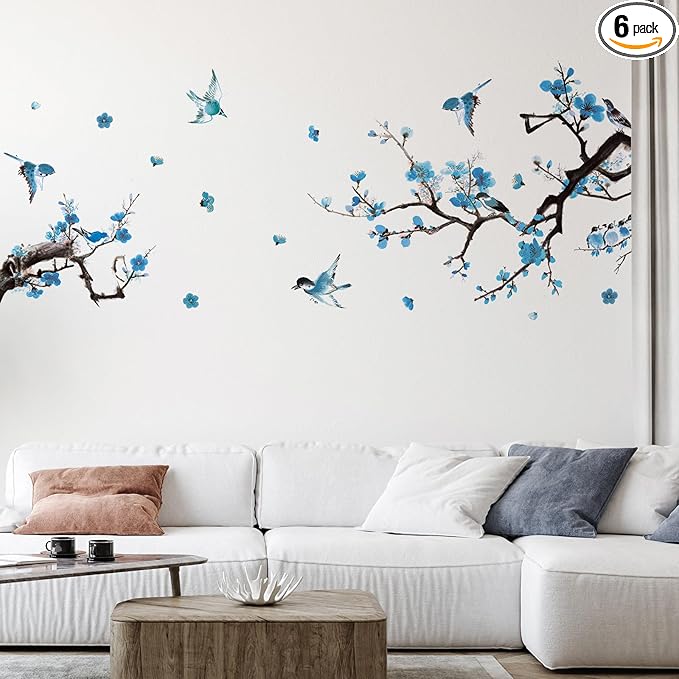 - Package includes: the wall decals consist of 6 pieces of wall stickers in blue flowers and birds style, measuring approx. 50 x 30 cm/ 19.7 x 12 inch, which provide sufficient quantity for daily decorations