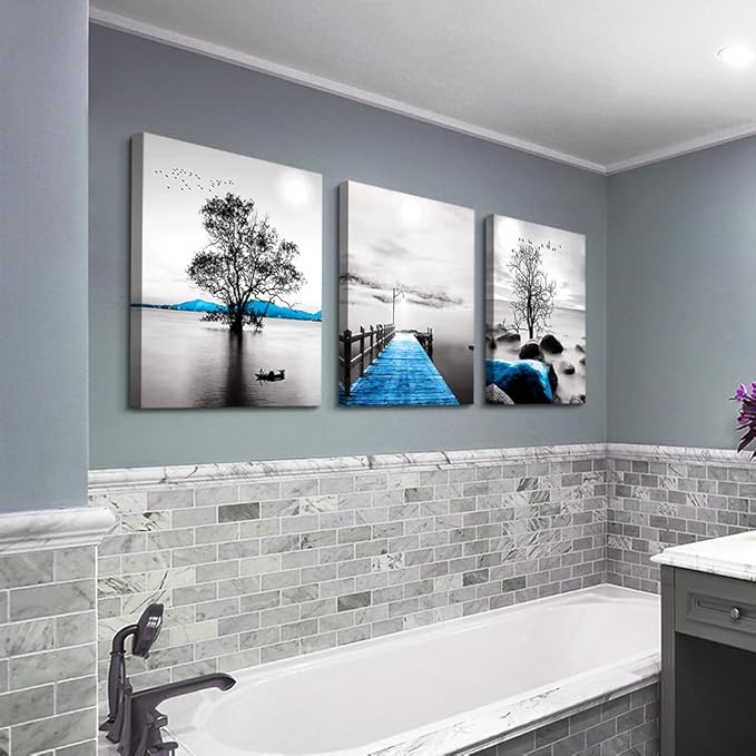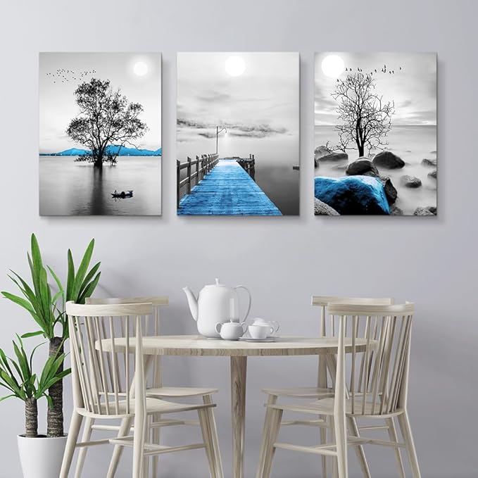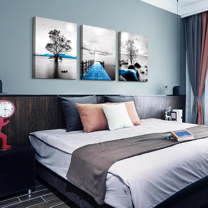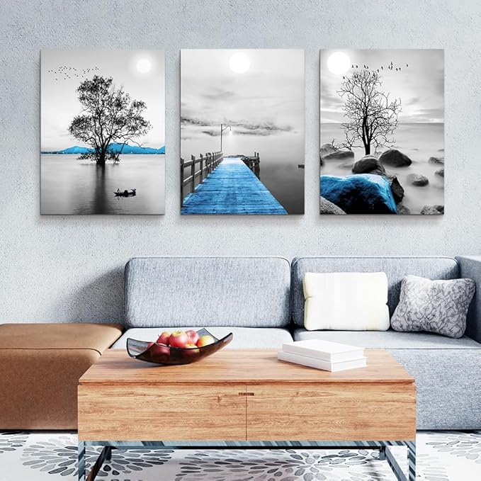 Wall Decorations For Living Room Framed Canvas Wall Art For Bedroom Office Wall Decor Black And White Ocean Landscape Wall Paintings Large Size Modern Posters Pictures Artwork For Home Decor 3 Piece