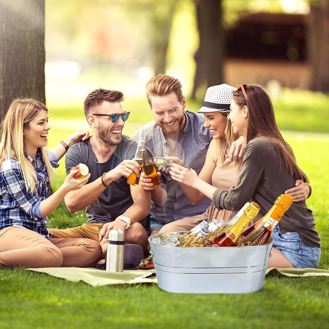 - 【LARGER SIZE】- The larger size of the galvanized tub allows for greater capacity, making it perfect for large gatherings and events. Whether you're hosting a backyard BBQ or a party with friends, the ice buckets for parties can hold enough drinks to keep everyone satisfied.