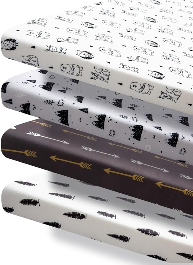 - 4 PACK VALUED SET: All kinds of sheets set included 4 pack woodland sheets with different patterns. Enough sheets to replaces once accidents happen. And save your money through buying 4 pack crib sheets as a set