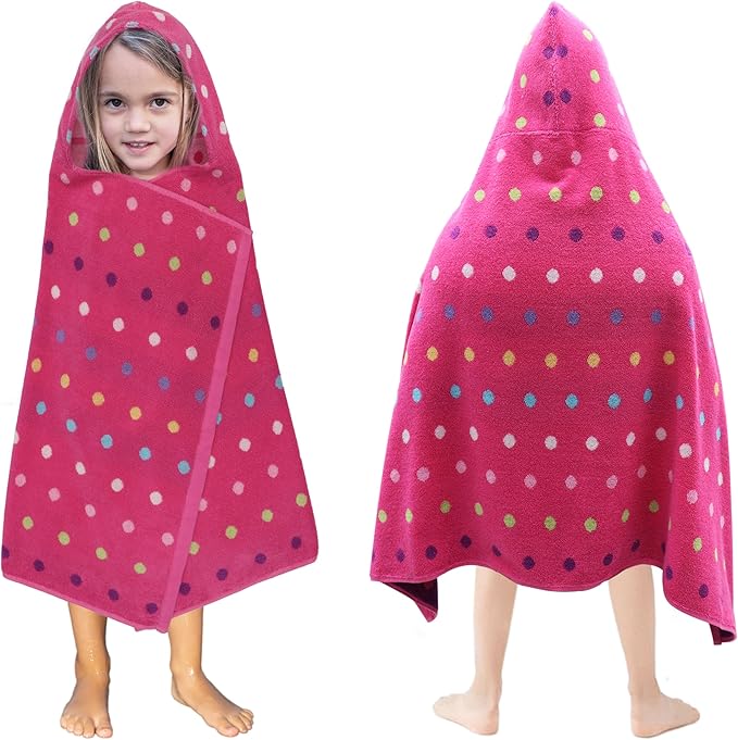 Hooded Bath Towel Wrap - 100% Cotton Jacquard Reversible Large Hooded Kids Towel - Toddler Shower Pool Beach Towel - Soft Plush Absorbent Quick Dry Easy Care Gift -26x50- Pink Multicolor