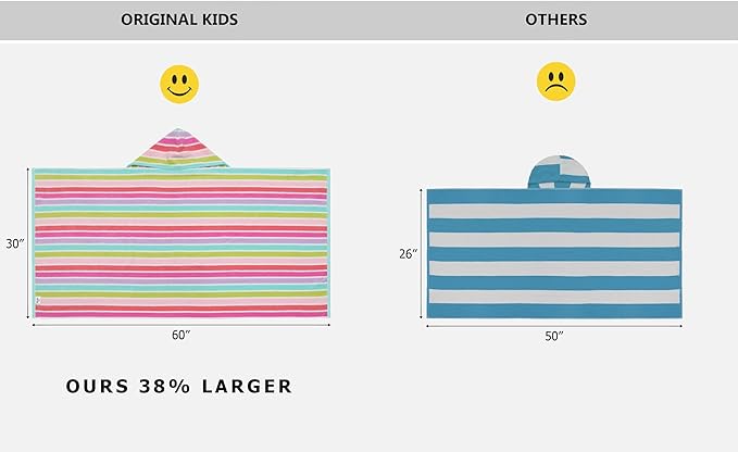 - High-Quality Cotton Bath Towel: The perfect combination of softness, absorbency, and design. The luxurious pile height ensures a fluffy and soft towel through wash cycles. Built to withstand the adventures of childhood, this hooded bath towel with a double-stitched hem with lock-stitched corners is crafted with durability in mind so it will be cherished for years to come. Yarn-dyed multi-stripes produce a brilliant, intense, and vibrant towel that won't fade.