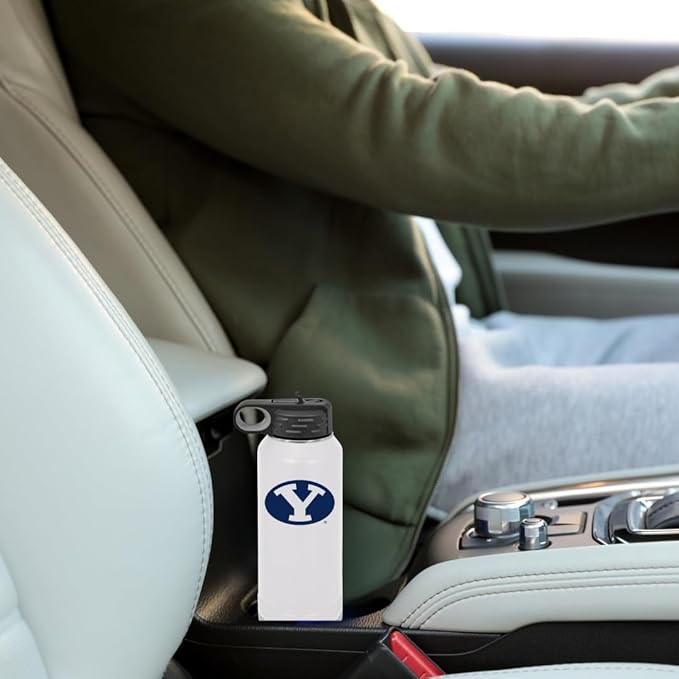 Game Day Outfitters BYU Cougars 32oz Stainless Steel Double Walled White Beverage Bottle with Flip Straw Spout– College Gear for Playoff Season– For Gym, Home or Auto – Show Your Brigham Youth Pride