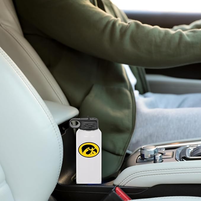 Game Day Outfitters University of Iowa 32oz Stainless Steel Double Walled White Beverage Bottle with Flip Straw Spout - College Gear for Playoff Season – Show your Hawkeye Pride