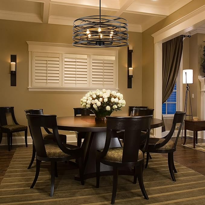 - Design: Drum light are made by highly skilled craftsmen. The classic combination of retro wood texture and black, the stylish retro double-layer drum frame design, makes this drum lighting chandelier full of rustic retro atmosphere. Perfect for dining room, living room, kitchen island, entryway, hallway, foyer, etc.