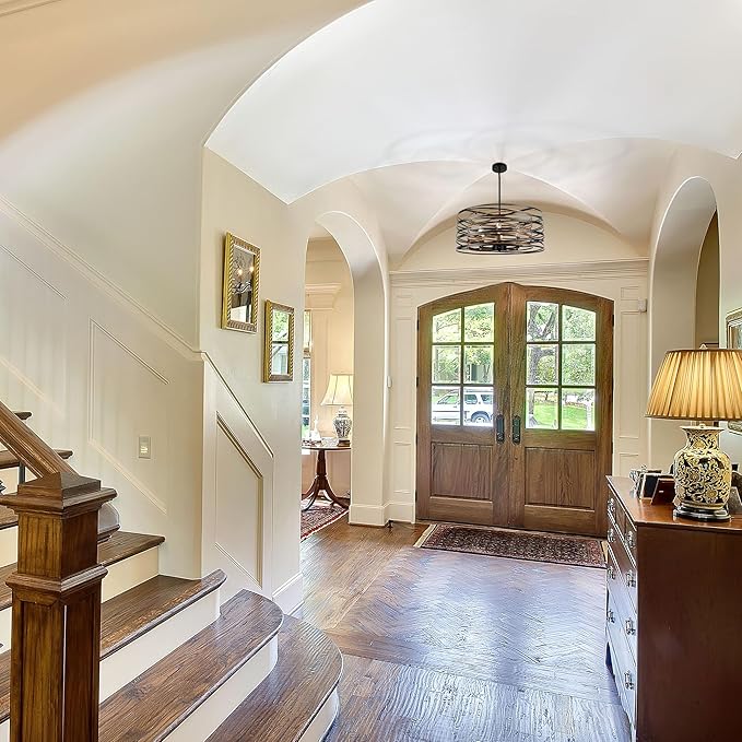 - Installation: The installation of the drum shade chandelier is very simple, and the detailed installation guide can help you complete the installation easily and quickly. Entry chandelier require hard wiring, no switches and no plugs.
