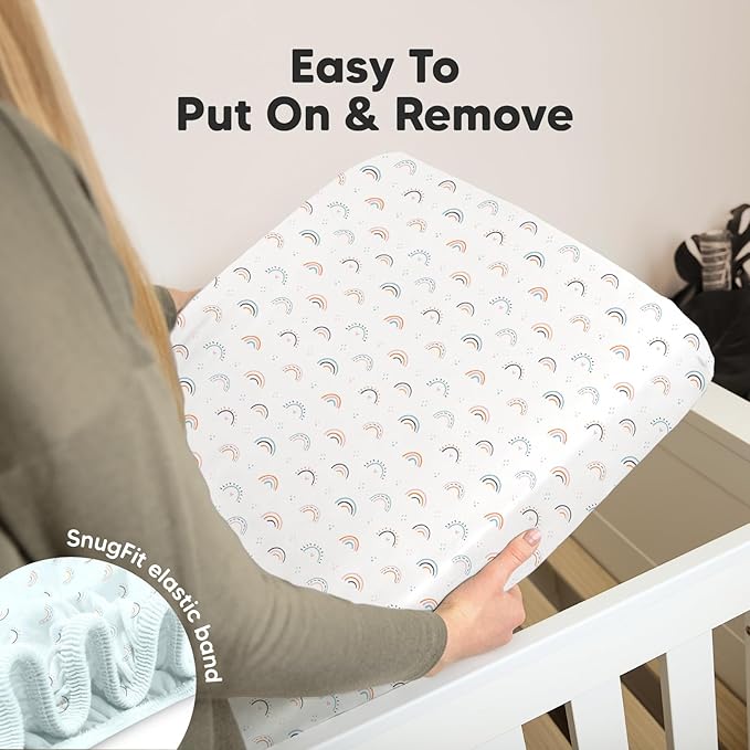 - Easy On, Easy Off - Our fitted mini crib sheet uses SnugFit Tech, a smart fabric knit that allows the fabric to stretch when you are fitting or removing the playard crib sheets neutral. No more struggling with rigid fabric!