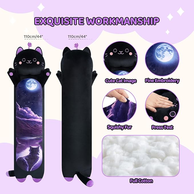 - Cat Body Pillow Multipurpose: This long cat throw pillow provide you not only a multiple-size hugging pillow, but also the best lumbar body pillow when you sitting on a sofa, and also the most comfortable sleeping pillow for a sweet sleep on the bed.