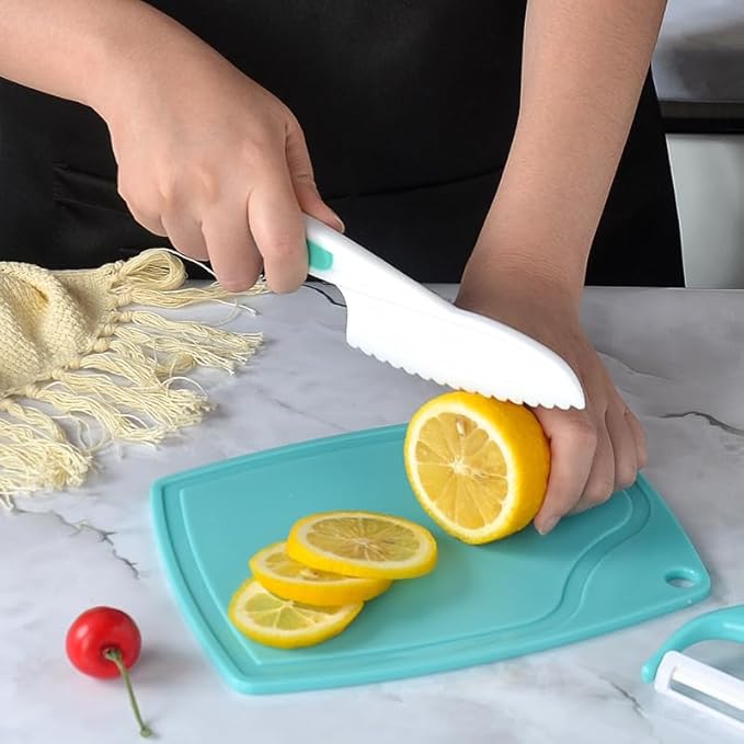 - Safe & Genuine kids knife set for real cooking: Crafted from premium food-grade polypropylene, our genuine kids cooking ensure a safe and authentic cooking experience. These knives are made from non-toxic, BPA-free materials, guaranteeing safety and resilience against breakage or deformation.